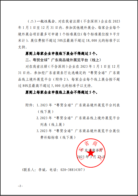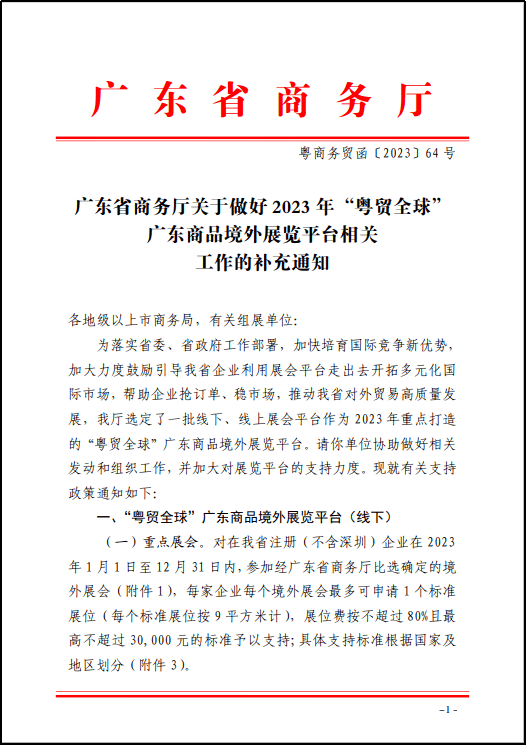 2023年2月2日,国务院新闻办公室举行新闻发布会,中国商务部对外贸易司司长李兴乾表示,2023年将推动国内贸易展会全面恢复线下展,全力支持企业境外参展。应企业出海需求,多地及时推出了出国经贸展览的相关措施。其中,《广东省商务厅关于做好 2023 年“粤贸全球”广东商品境外展览平台相关工作的补充通知》提到,对符合条件的境外参展企业予以一定标准的资金支持。本届亚洲游戏游艺设备博览会也被列入为2023 年“粤贸全球”广东商品境外展览平台的一般性展会。因此,每家参展商按规定可申请补贴展位费最高达18,000元人民币!各位参展商请抓紧机会,别错过这次高力度的补贴机会啦!